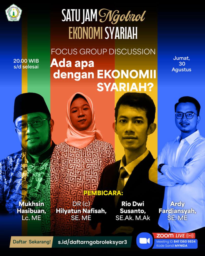 Diskusi menghadirkan panelis dari jajaran dosen Prodi Ekonomi Syariah STAI Nida El Adabi yang merupakan pakar di bidangnya masing-masing, antara lain: