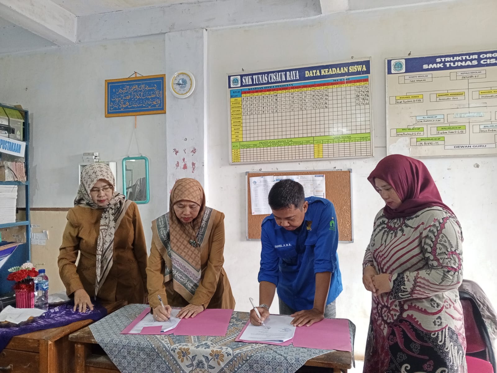 Penandatanganan MoU dilakukan oleh Kepala SMK Tunas Cisauk, Partinah, S.T, bersama Fahrul Hidayat, M.M selaku Ketua Program Studi Manajemen Bisnis Syariah yang bertindak atas nama Institut Nida El-Adabi. Acara ini turut dihadiri dan didampingi oleh dewan guru SMK Tunas Cisauk, yang memberikan dukungan penuh terhadap terjalinnya kerja sama tersebut.